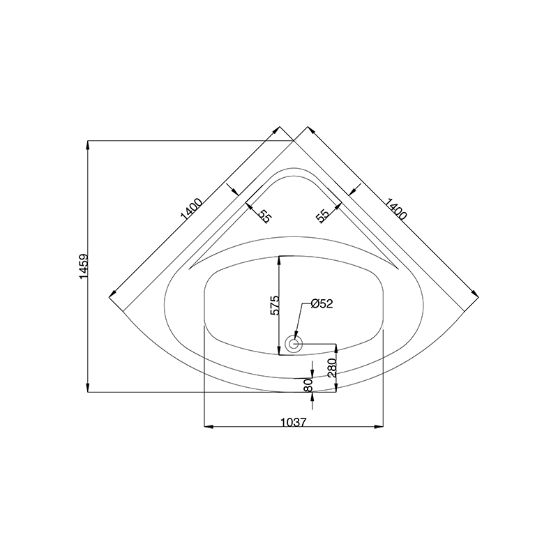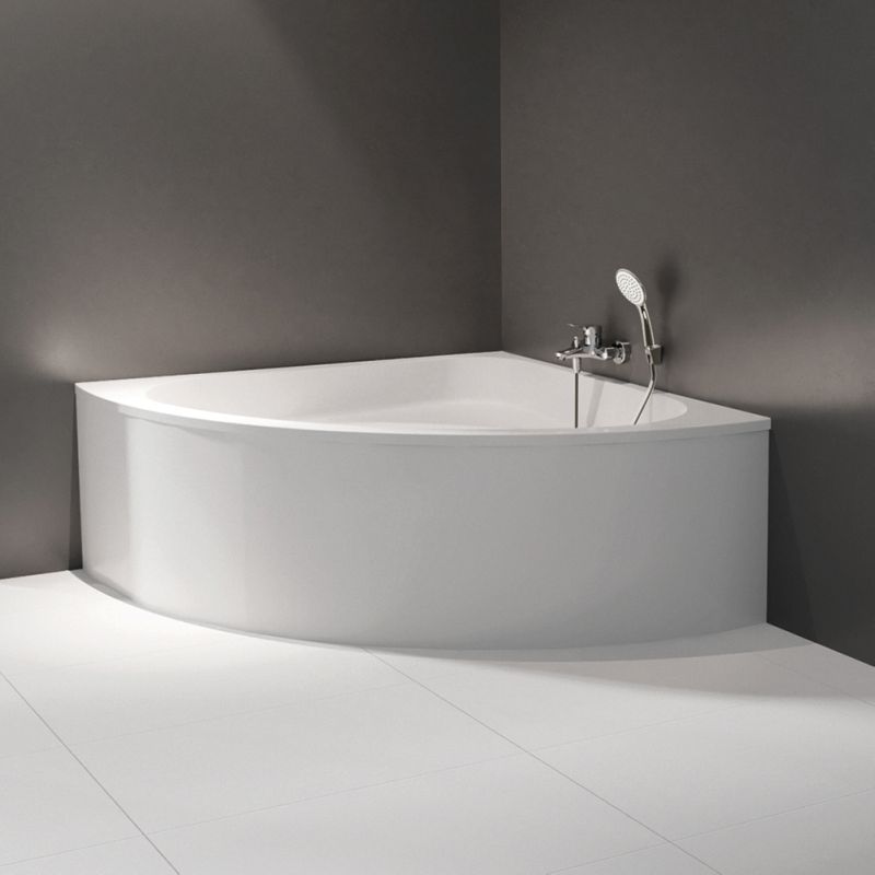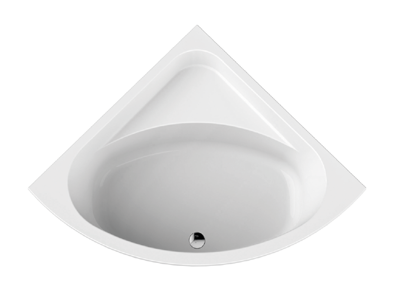 Eck-Badewanne aus Acryl, in Sanitärqualität, aus Plattenmaterial tiefgezogen, rückseitige Glasfaser-/Polyesterverstärkung und zusätzliche Stabilisierung im Bodenbereich, Ablauf mittig versetzt zur Überlaufbohrung hin, ohne Füße, ohne AblaufProgramm, Ablauf: Ø 52 mm, Innentiefe: 47 cm